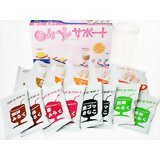 ドリンクとスープのミックスタイプ。コーンクリーム、きのこクリーム、クラムチャウダー、珈琲みるく、苺みるく、黒ゴマきなこ、抹茶みるくの各2袋入。シェーカー付き。
